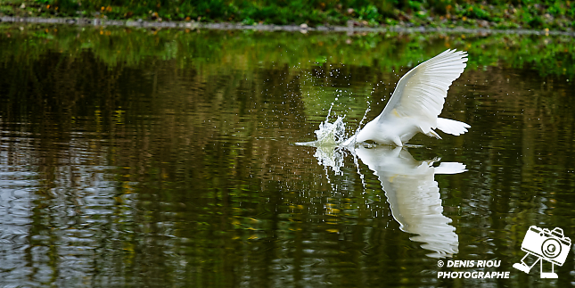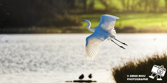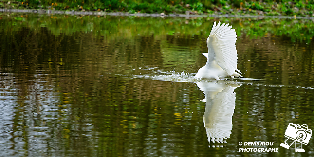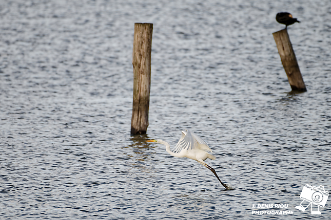 Bretagne, Brocéliande, Domaine de Careil, espace naturel. Une Grande Aigrette (Casmerodius albus) s’envole. Iso 180, f/8.0, 1/800 s, 700 mm.