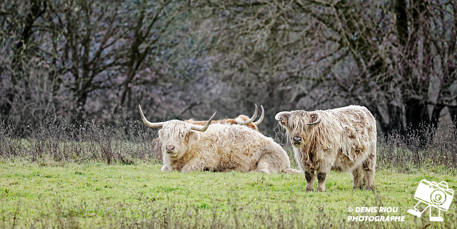 Vaches Highland au champ – Domaine de Careil. Highland cattle est une race bovine écossaise originaire de la région des Highlands. Sous son air paisible, la Highland peut courrir jusqu’à 40 km/h.