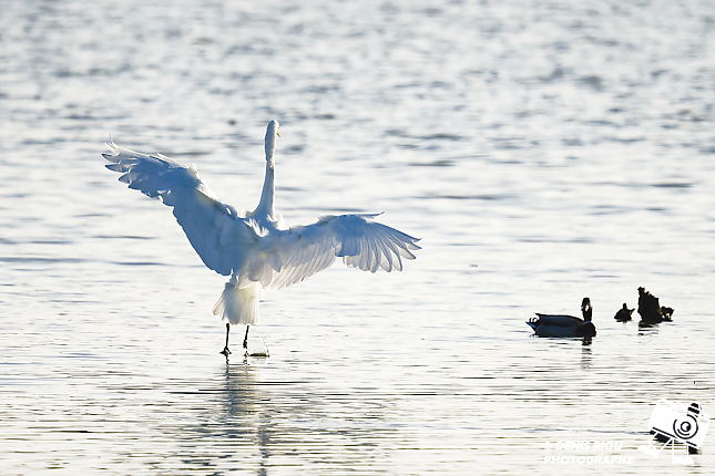 Bretagne, Brocéliande, Domaine de Careil, espace naturel. Une Grande Aigrette – Ardea alba : perdu, on ne peut pas gagner à tous les coups.