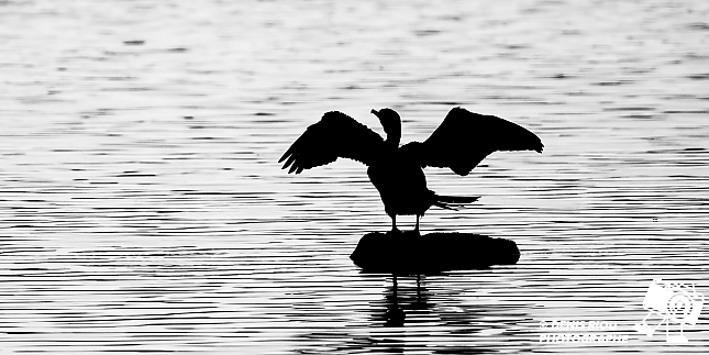 Silhouette du Grand cormoran. Quand il n’y a pas d’animations, que la lumière n’est pas terrible, que je suis en contre-jour, je m’amuse à faire une silhouette en noir-blanc.