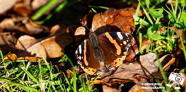 Bretagne, Domaine de Careil, espace naturel. Le 04 décembre 2025, le Vulcain – Vanessa atalanta prend son bain de soleil. Iso 640, f/8.0, 1/800 s, 700 mm.