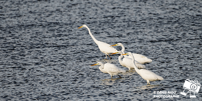 Bretagne, Brocéliande, Domaine de Careil, espace naturel. Cinq Grande Aigrette (Casmerodius albus) partent en chasse sur le plan d’eau. Iso 250, f/8.0, 1/1250 s, 700 mm.