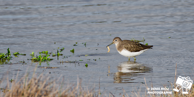 Bretagne, Brocéliande, Domaine de Careil, espace naturel. Un Chevalier culblanc (Tringa ochropus) a trouvé de quoi se restaurer pour l’instant. Iso 200, f/8.0, 1/800 s, 700 mm.