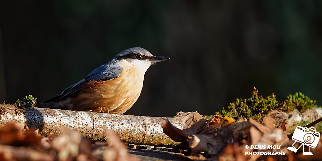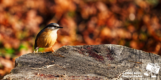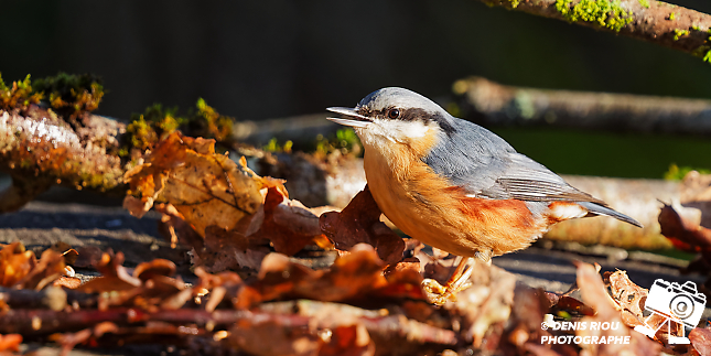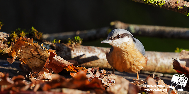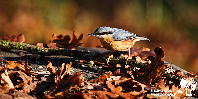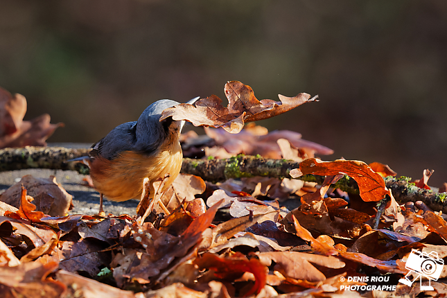 Cet après-midi, j’aperçois une Sittelle torchepot sur le tronc d’un chêne, je décide de m’installer et d’attendre dans le froid glacial du Berry. Je dépose quelques graines parmi les feuilles mortes.