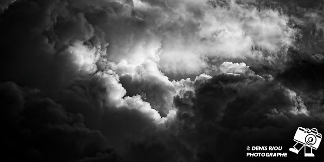 Paysage éphémère de nuages., traitement en noir et blanc. J’aime beaucoup les paysages de nuages, ici photographié au 300 mm, 400 iso à f/5.6, 1/6000 s.