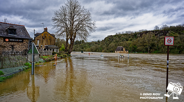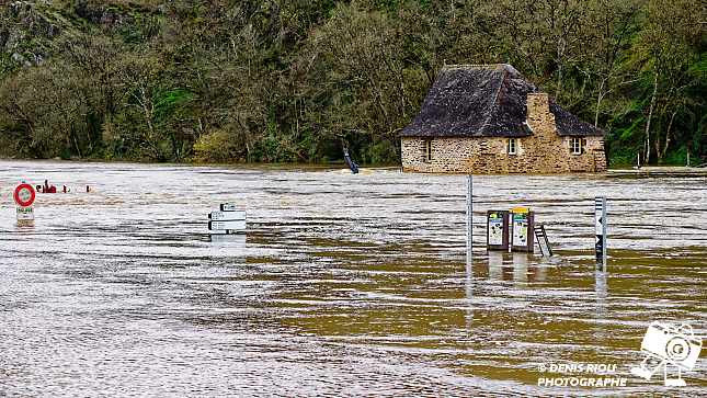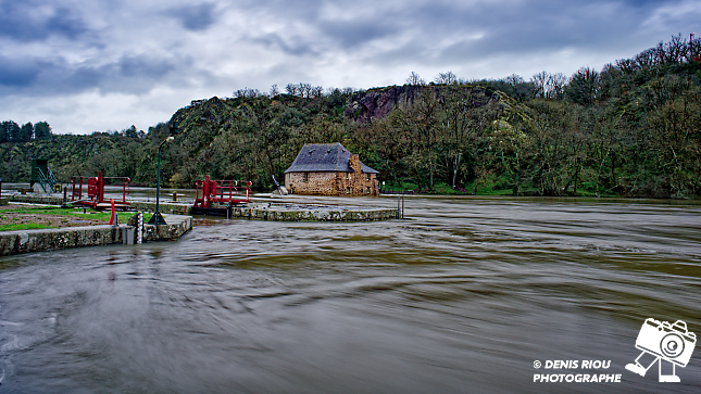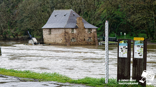 Vendredi 20 février 2026, l’écluse a disparue, le fleuve Vilaine est encore sorti de son lit. Le moulin du Boël est inaccessible.
