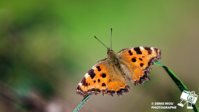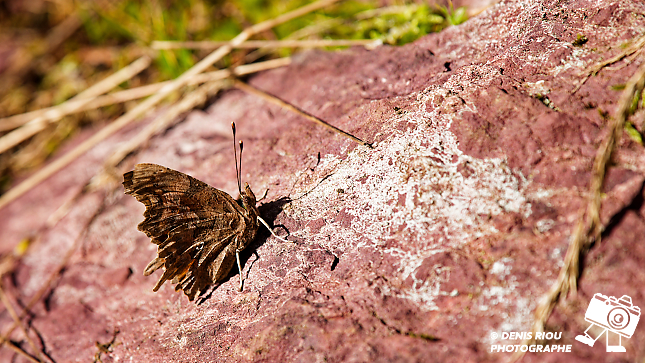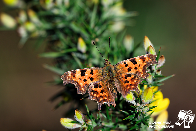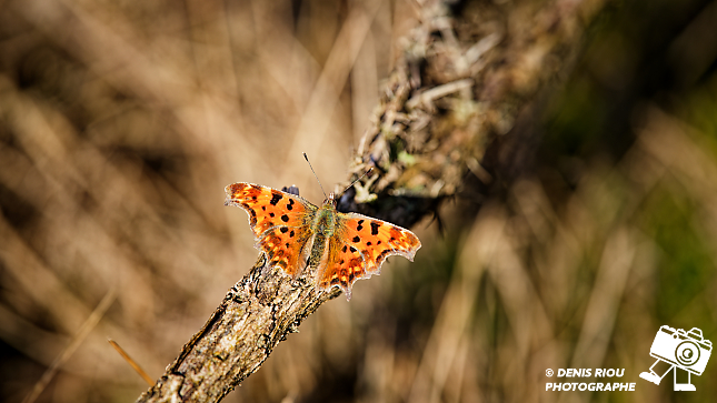 Papillon Robert-le-diable ( Polygonia-c-album ) dans les landes sèches d’Iffendic, Bretagne. 105 mm, f/9, 1/250 s, iso 160, distance 67 cm.