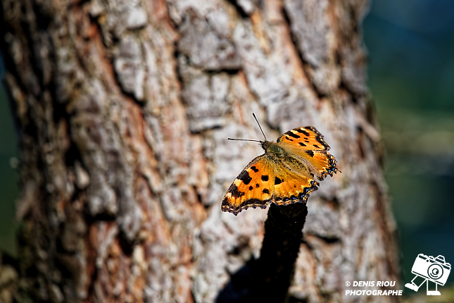 Papillon la Grande Tortue ( Nymphalis polychloros ), il faut avoir un peu de patience, le papillon revient souvent se poser sur un de ces endroits favoris.