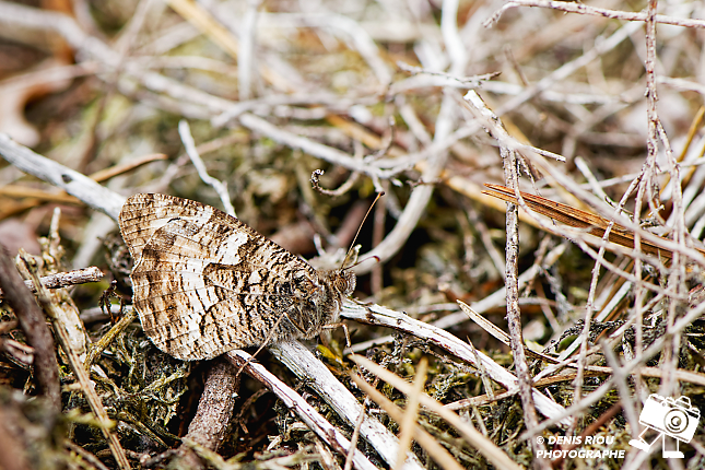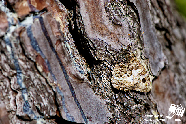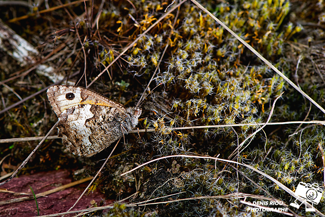 Le papillon L’Agreste – Hipparchia semele se chauffe et se cache discrètement. L’apparence de ses ailes se confond avec l’écorce du sapin ainsi que les roches, les mousses, les herbes sèches….