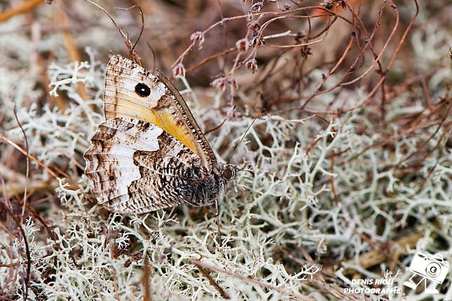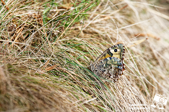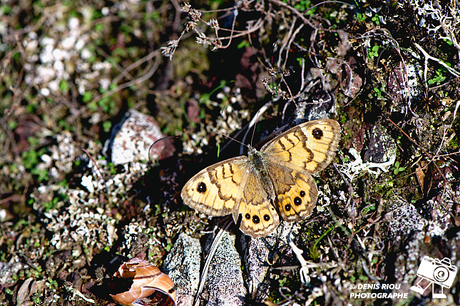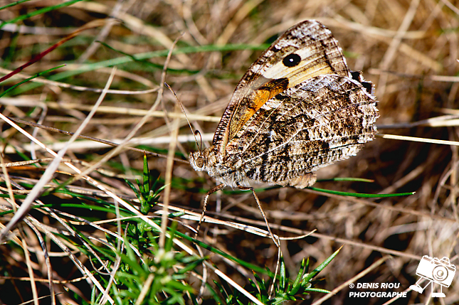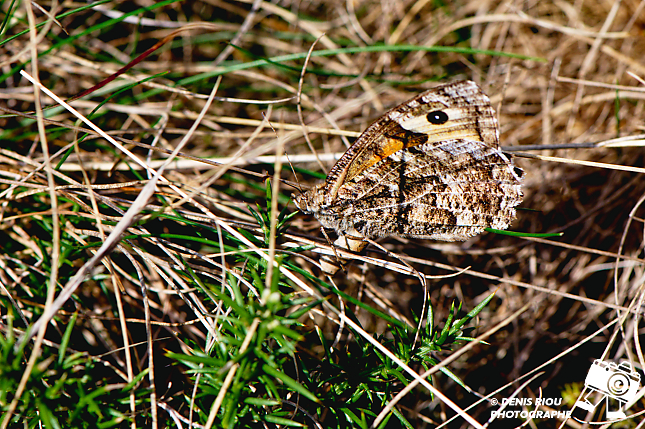 Dans les landes sèches, je trouve intéressant l’endroit, le décor, le papillon l’Agreste – Hipparchia semele, tout semble correspondre, les formes, les courbures, les couleurs… je déclenche. Mes réglages photo : iso 250, f/10.0, 1/250 s, 147 mm, Manuel, mesure matricielle.