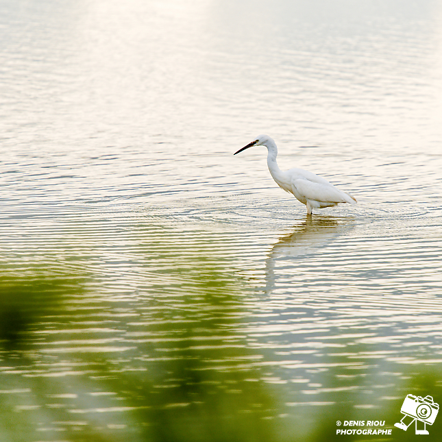 L’Aigrette garzette – Egretta garzetta en pleine concentration, pas de bruit, se déplace lentement, le regard affûté à la recherche du moindre mouvement sous l’eau.