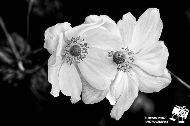 Anémones du jardin en noir-blanc. Comme chaque année, elle m’émerveille, il en faut peu pour être heureux.