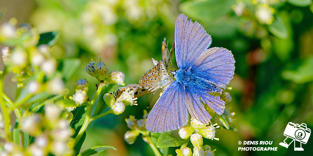 L’ Azuré de la Bugrane – Polyommatus icarus, un mâle est attiré par une femelle qui cherche à l’attirer pour un éventuel accouplement. Saint-Gildas-de-Rhuys