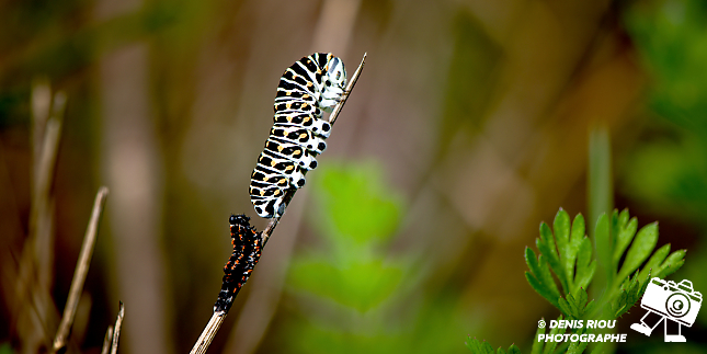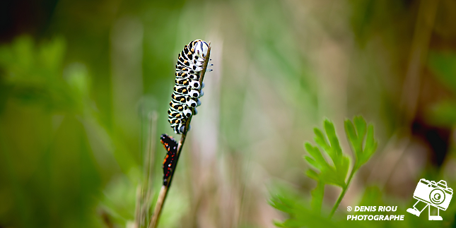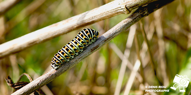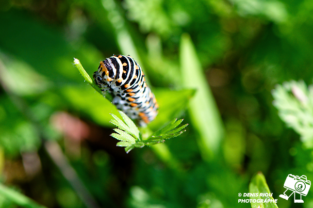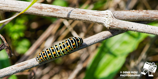 Encore une des chenilles du papillon Le Machaon – Papilio machaon après 22 ème jour après le dépôt de l’œuf par le papillon.