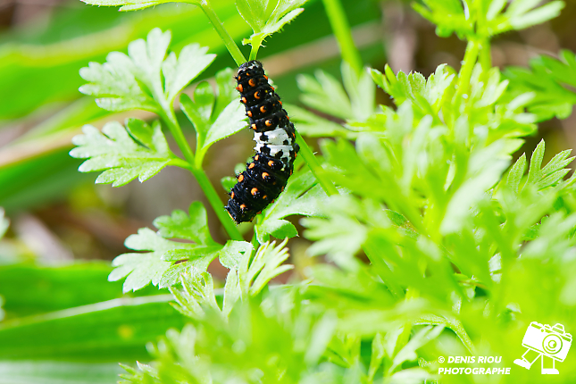 Les chenilles du papillon Le Machaon – Papilio machaon ont de quoi se restaurer parmi les plants de carottes sauvages. Photographie au flash : iso 800, f/16.0, 1/160 s, +2/3 EV, 147 mm, Manuel, mesure matricielle, flash déporté avec controleur SU-800.