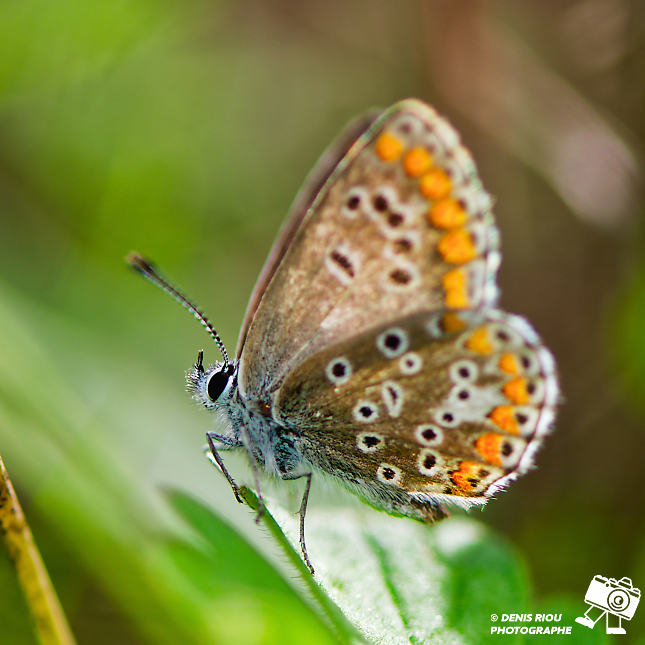 Nature bretonne : un papillon Le Collier-de-corail – Aricia agestis, à la focale de 147 mm, à une distance de 45 cm, avec f/5.0, la profondeur de champ (zone de netteté) est de 0,25 cm, donc pour bien faire la mise au point sur les yeux, il faut rester concentré, ne pas se presser, attendre le moment favorable… mais ne pas attendre que le papillon s’envole ailleurs.