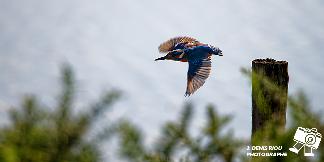 L’envol du Martin-pêcheur d’Europe _ Alcedo atthis. Domaine de Careil – Réserve Ornithologique. À partir de la cabane nord, 16h48, je suis à contre-jour, mes réglages pour cette photo : iso 200, f/7.1, 1/1250 s, +1/3 EV, 420 mm, mode S, mesure matricielle.
