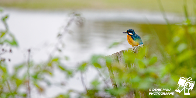 Je suis à peine arrivé que le Martin-pêcheur d’Europe _ Alcedo atthis se pose sur un piquet pour observer en contre-bas l’eau de la réserve ornithologique de Careil puis va disparaître.
