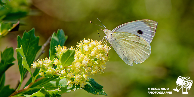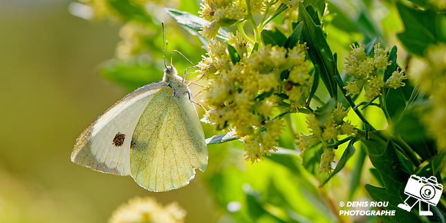 La Piéride du Chou – Pieris brassicae butinant. La tache anguleuse noire est bien visible, par transparence la tache noire en forme de boomerang est observable. Photo en contre-jour :iso 100, f/6.3, 1/320 s, +1/3 EV, 147 mm, mode S, mesure matricielle. Saint-Gildas-de-Rhuys