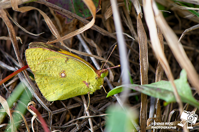 Le Souci – Colias crocea au repos dans un champ, météo couverte avec rafales de vent . Pendant 20 minutes je l’ai photographié, déplacé mon flash en mode déporté sans faire de bruit ni de gestes brusques, il a été très coopératif.