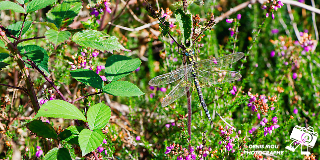 L’ Aeshna cyanea – Æschne bleue. Je le cherche, examine, scrute, fouille du regard à droite à gauche et je finis par trouver la richesse de Brocéliande.