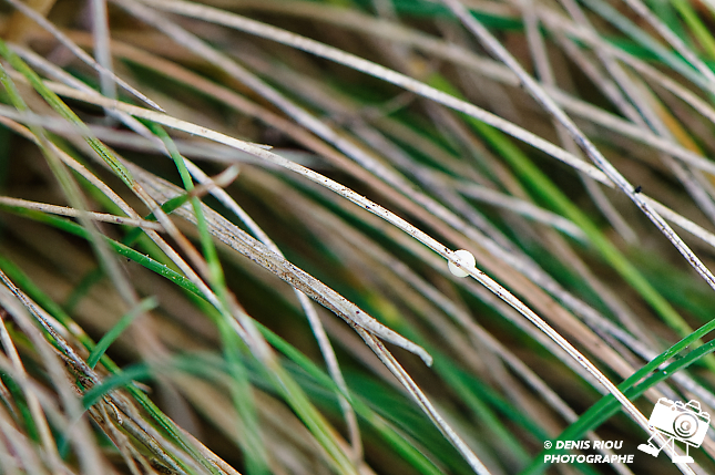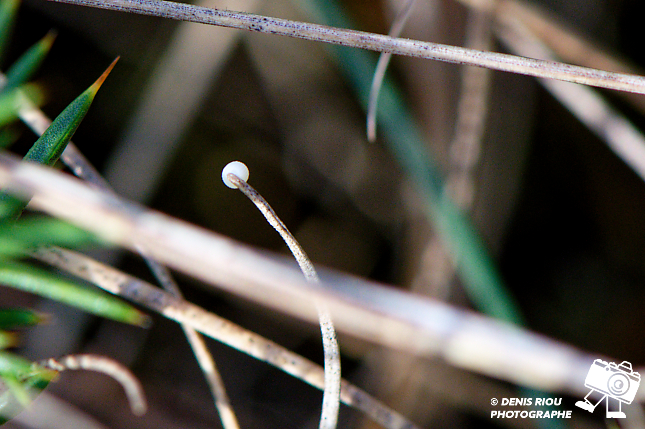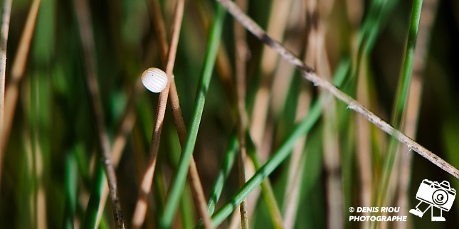 Je me rends sur les landes sèches à la recherche de l’œuf déposé la veille par le papillon L’Agreste – Hipparchia semele. Comme j’ai bien repéré l’endroit malgré la végétation et le très petit diamètre de l’œuf, je suis parvenu à le trouver.
