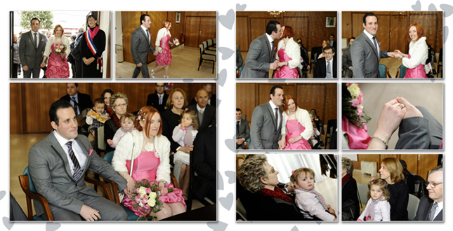 Peu d’espace disponible pour les cadrages mais la belle complicité amoureuse des tourtereaux a largement contribué au succès des portraits. Après un passage pour se dire « OUI » à la mairie, l’émotion des parents, quelques photos de groupes et un petit cocktail, voici tout ce petit réuni pour un repas convivial ou chacun a laissé exprimer sa joie.